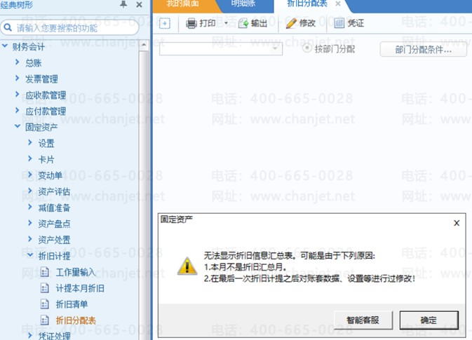 下次折旧分配月份就是折旧汇总月,如果在打开折旧分配表的日期不是折旧分配月,会提示无法显示折旧信息汇总表,可能是由于以下原因:本月不是折旧汇总月。