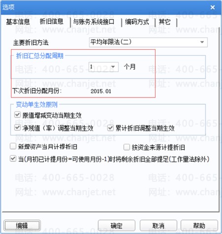 根据折旧汇总周期查看折旧汇总月。
