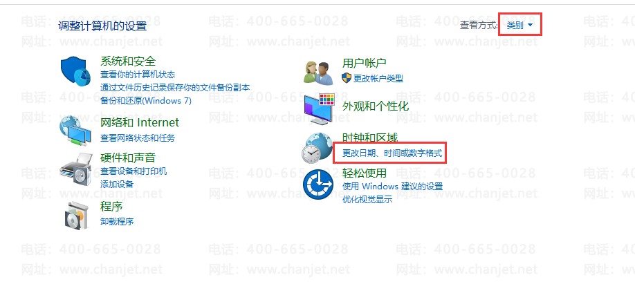 【解决方案】:打开控制面板,查看类型选择类型,点击更改日期、时间或数字格式