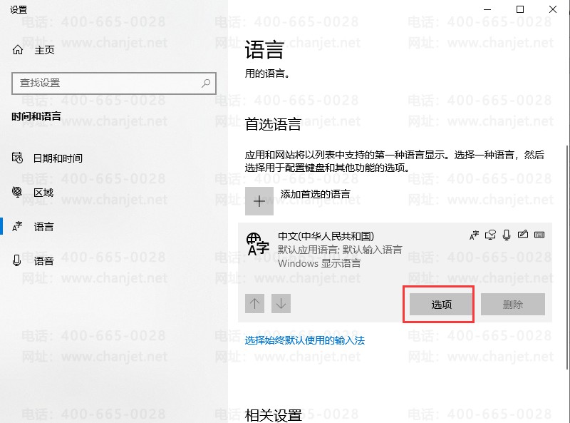 在点击语言首选项