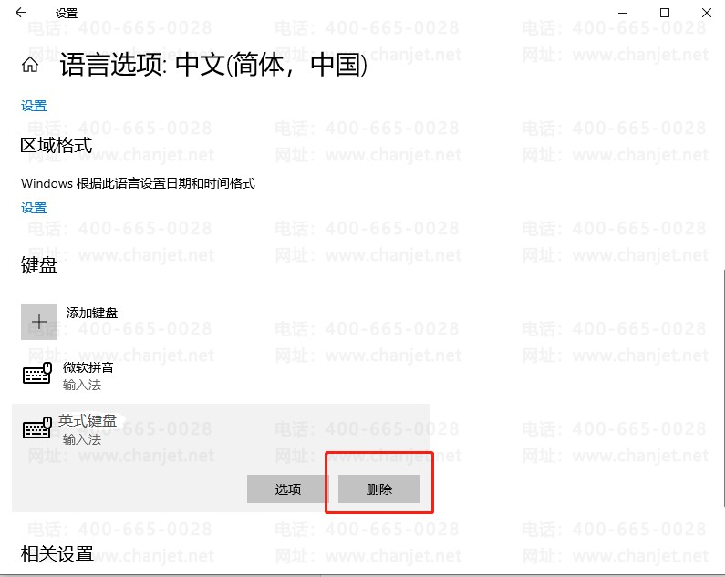 往下拉,在键盘中找到英式美式键盘,点击删除即可