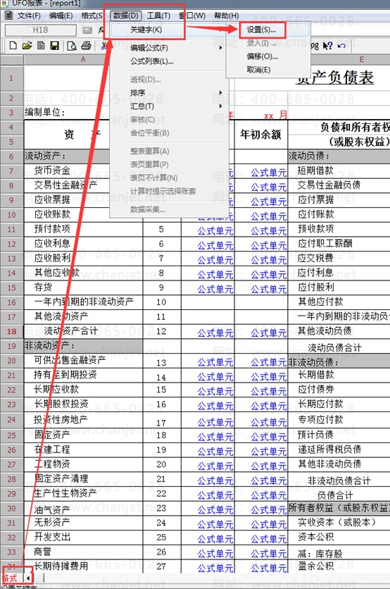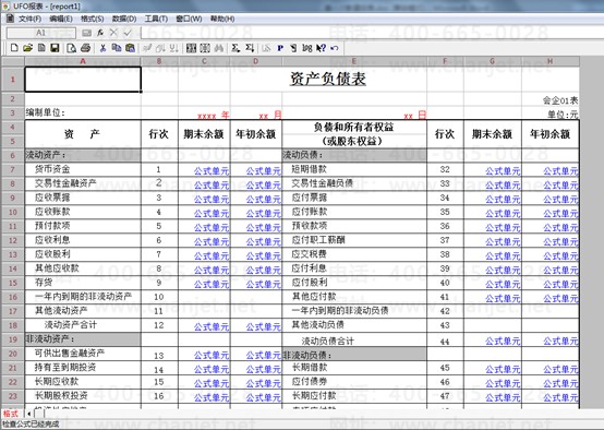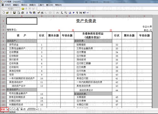 2)打开UFO报表,文件新建,格式报表模板,选择行业性质和所要新建的报表