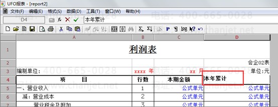 1) 首先切换成格式状态,将本期金额四个字修改成本年累计四个字。