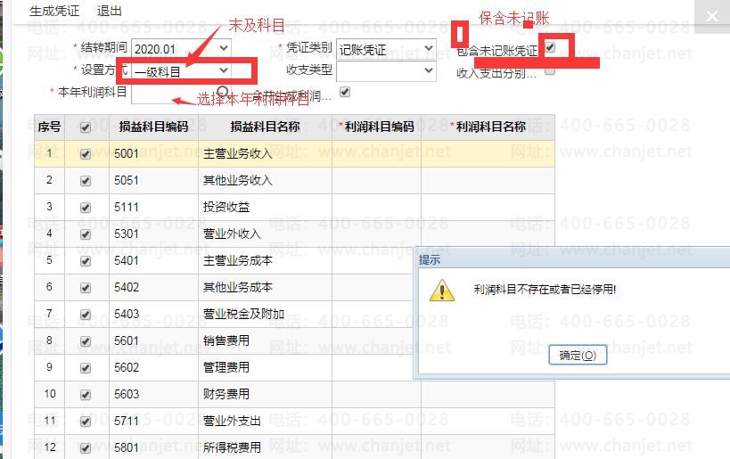 但是有些功能客户不熟悉,例如期间损益结转,下图是损益结转得设置图片,设置方式一定要选择末及科目,客户可以参照。