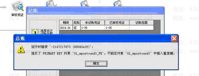 问题详情:用友软件T3反记账运行时错误:违反了primary key 约束'gl_mpostcond1_pk'.不能在对象束'gl_mpostcond1'中插入重复键