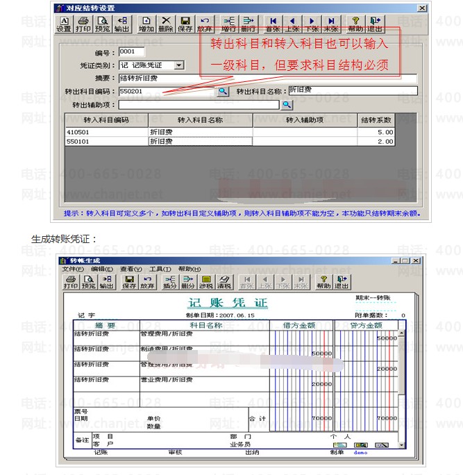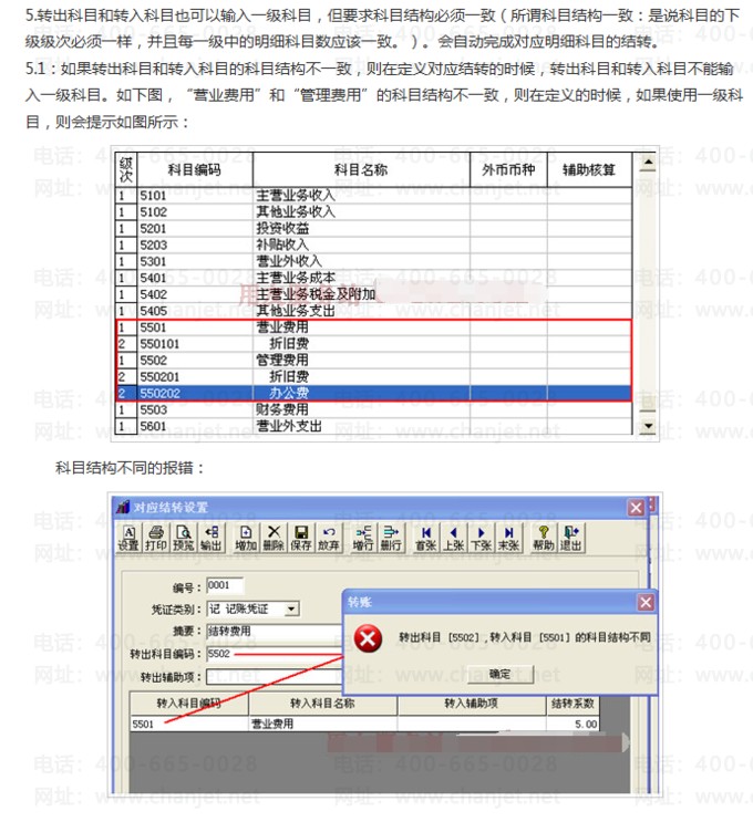 3.转出科目和转入科目的辅助核算必须一致(同时设置,或者同时不设置,如设置,必须设置一样的辅助核算。)。