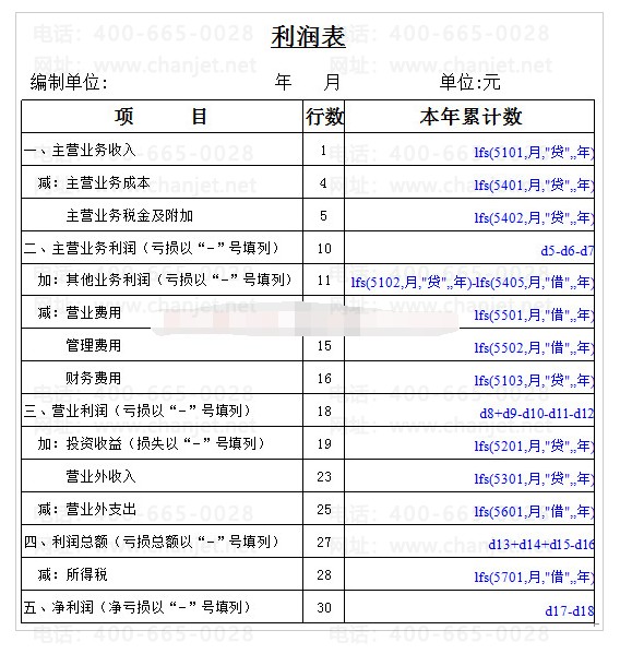 2.同时要把损益表中“本年累计数”的用LFS(累计发生数)函数取数。“本年累计”数公式参照下表: