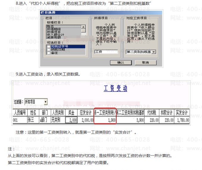 1.启用工资账套,初始化时“工资类别个数”选择“多个”,“从工资中代扣个人所得税”前的勾不选择;2.分别建立“第一次发放工资”类别和“第二次发放工资”类别,打开“002第二次发放工资”类别,通过设置选项设置002工资类别代扣税。