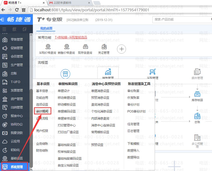 STEP2:点“系统管理”-“基本设置”-“会计期间”;