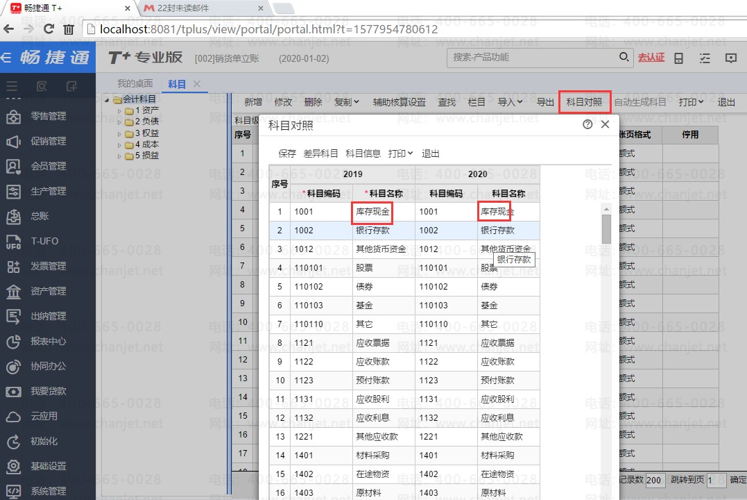 备注:如果上年12月没有结账,建议最好不要增删改科目,否则上年12月财务结账时有些期初可能会带不过来,如果本年度一定要修改科目,则建议改完科目后,在“基础设置”-“科目”-“科目对照”中做好科目对照,再进行上年12月的财务月结操作;