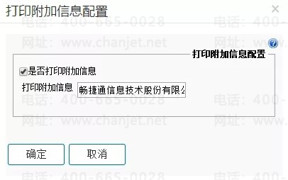A:以系统管理员admin身份登录系统管理,在空白位置按快捷键【Ctrl+Alt+Y】,弹出【打印附加信息配置】页面,取消勾选【打印附加信息】,这样打印就不会显示,若想打印本公司名称,则在【打印附加信息】后录入本公司单位名称即可。