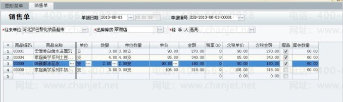 一般情况下,在相应商品处打上赠品的属性以后,单价和金额自动变成为0,如下图