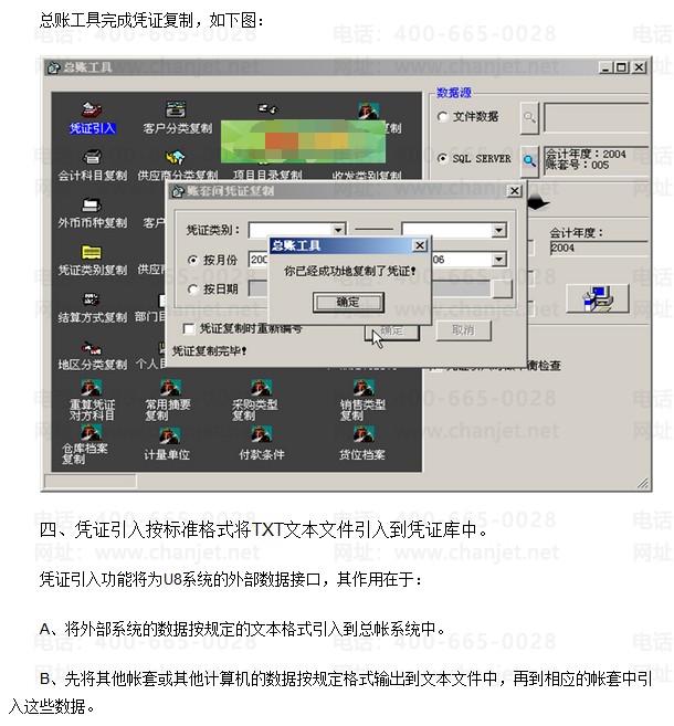 3、总账工具提供了从制定账套中将基础档案、记账凭证导出并导入到别的指定账套的功能,大大提高了效率。