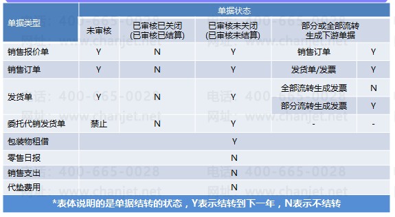 2、在新建年度账后,销售模块未结转之前,新年度账中不允许录入任何数据,否则会在结转时被覆盖。该部分业务可在上年年度账中录入,结转时自动结转到下年。