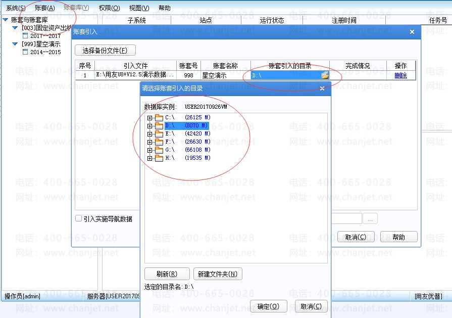 打开系统管理用admin用户登录  点击 账套   点击引入