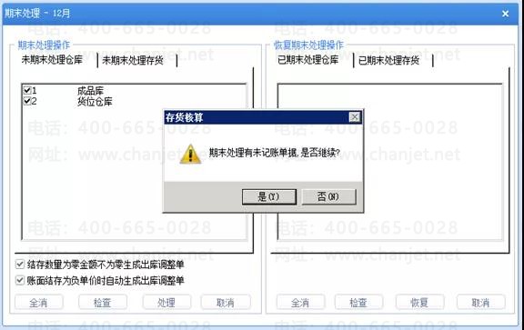 所有仓库和存货都已经从“未期末处理”转换到“已经期末处理”,完美搞定!