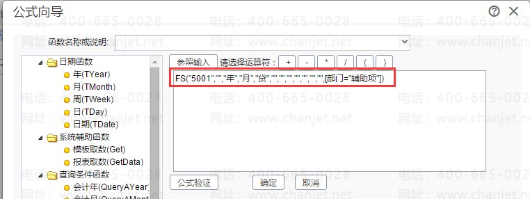 第三步、在UFO报表公式中设置公式”部门=辅助项”: