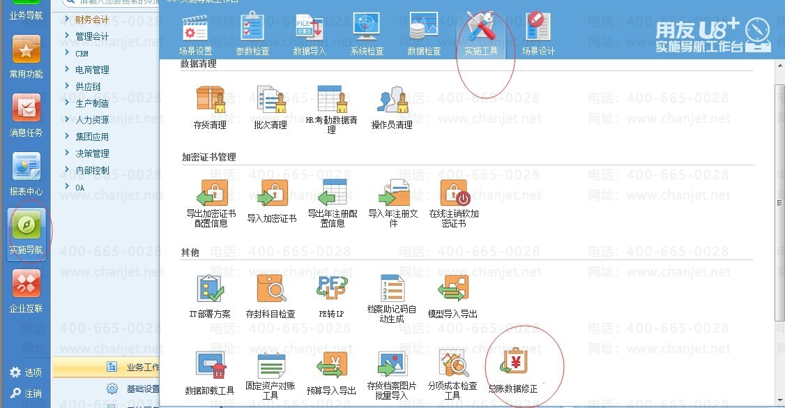 U8+10.0以上的版本反记账操作:实施导航--实施工具--总账数据修正,选择需要反记账的凭证。点击确定即可。