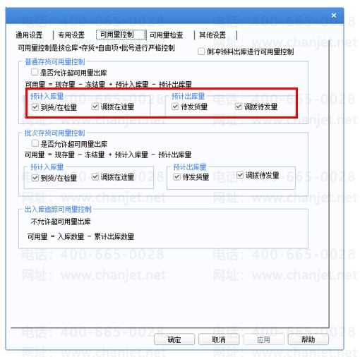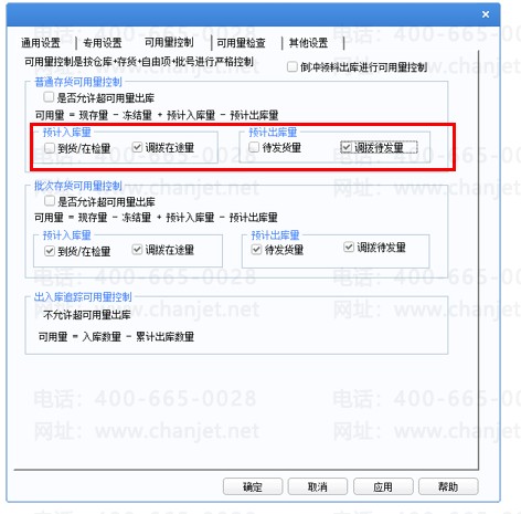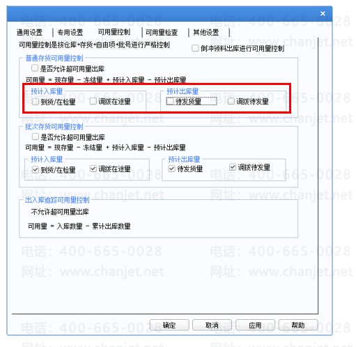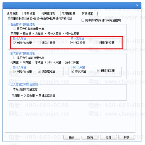 4、库存选项不勾选调拨在途量、调拨待发量,勾选到货/在检量、待发货量
