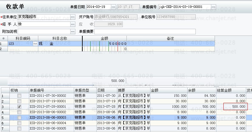 填写业务单据时形成的应收/应付账款,待款项收到或支付后,填写收/付款单,选择往来单位,录入科目名称及金额,系统会自动将尚未收款/付款的单据列出来,然后再找到收/付款单与其对应的业务单据,在结算金额中填写具体的结算金额,点击单据过账即可,