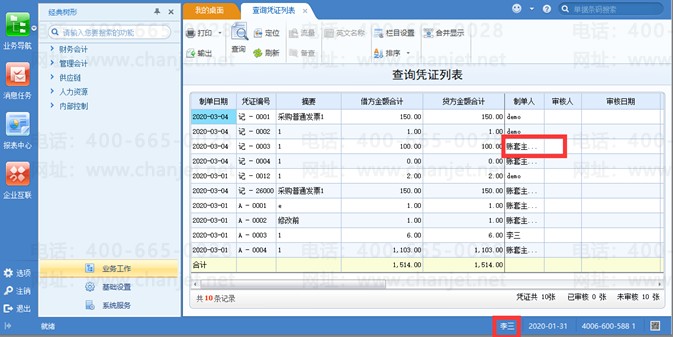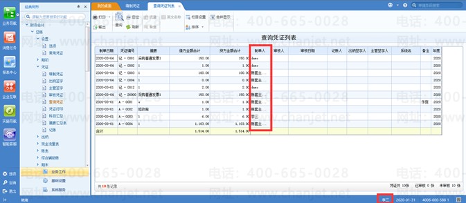 3、总账-凭证-查询凭证界面,可以查看到其他人的凭证
