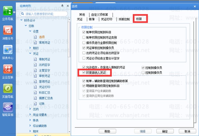 1、 总账-设置-选项-权限,勾选“可查询他人凭证”