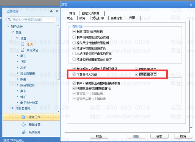 1、 总账-设置-选项-权限,勾选“可查询他人凭证”,并勾选对应的“控制到操作员”