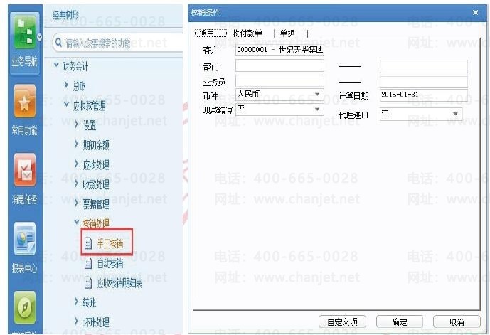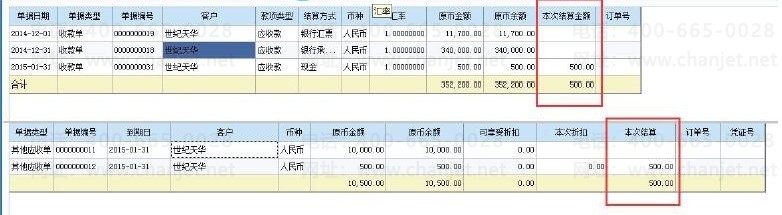 4. 选择需要核销的单据,在本次结算金额中录入本次需要结算的金额.确认收款单和应收单都录入了本次结算金额,并且金额一致.点击确认即可.