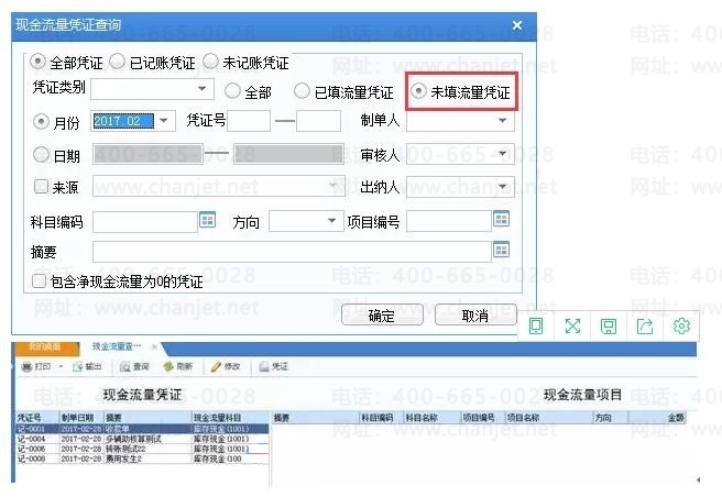 现金流量表-现金流量凭证查询选择未填流量凭证查看并录入。