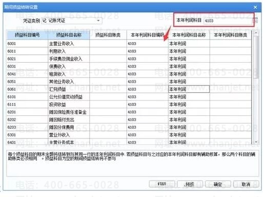右上角输入本年利润科目编码4103后,选中表格中空白列即可自动匹配本年利润科目编码和名称。