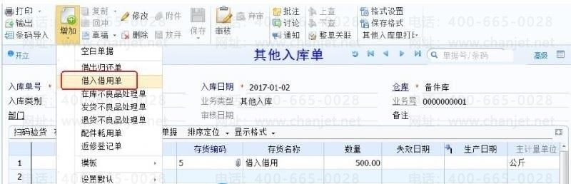 1、企业从客户或供应商借入存货时,录制相应的借入借用单记录企业与客户、供应商之间存在存货借用关系,如果借入过程中有运输费用产生则录入承运商及运费等相关信息。