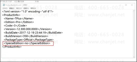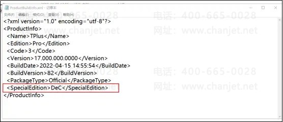 用记事本打开安装目录中ProductBuildInfo.xml文件