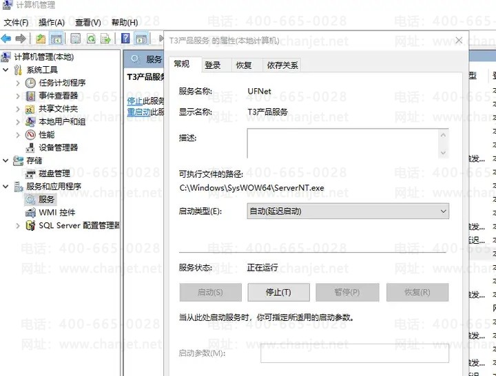 此时,需要去给T3服务启动类型改为:延时启动,在如下界面