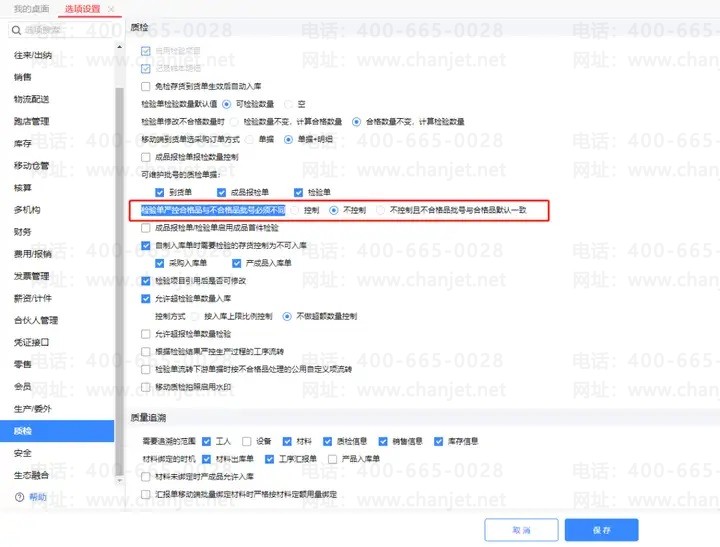 合格与不合格批号不一致控制目的是为了质量追溯时可以通过批号区分使用的是合格还是不合格品,如坚持就要用同一批号,可在选项【检验单严控合格品与不合格品批号必须不同】中关闭控制