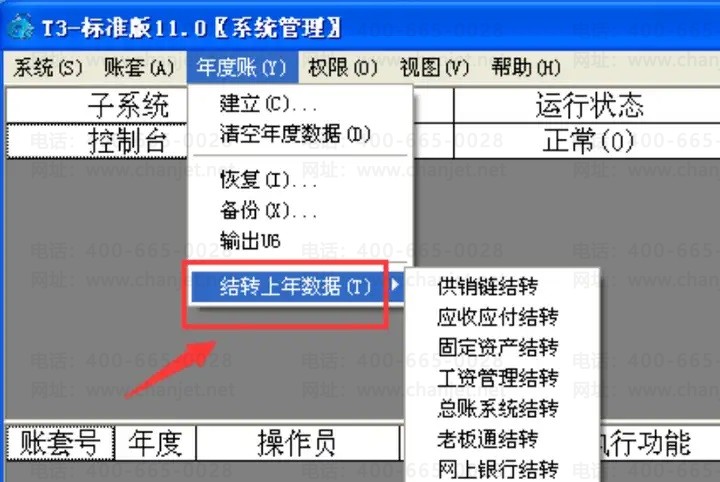 T3、T6的年结流程基本一样,以下截图以T3标准版11.0为例: