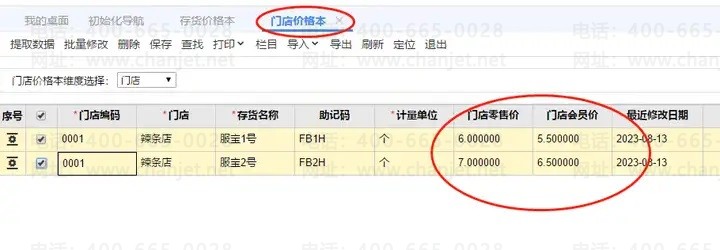 2、按门店区分相同商品在不同门店的零售价格,客户要在【基础设置】-【门店价格本】-维护对应门店的存货(零售价),会员价也是相同的(但是需要启用会员管理)。
