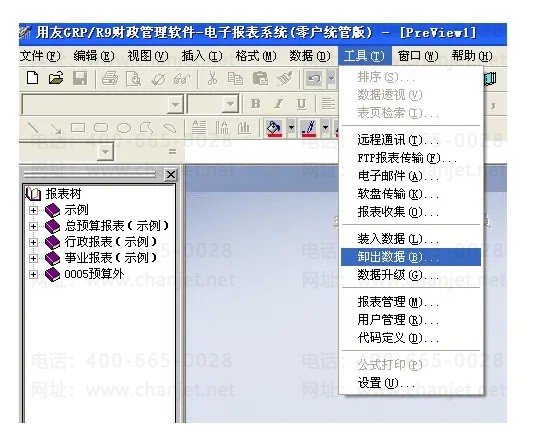一、在电子报表系统中,点击“工具”——“卸出数据”