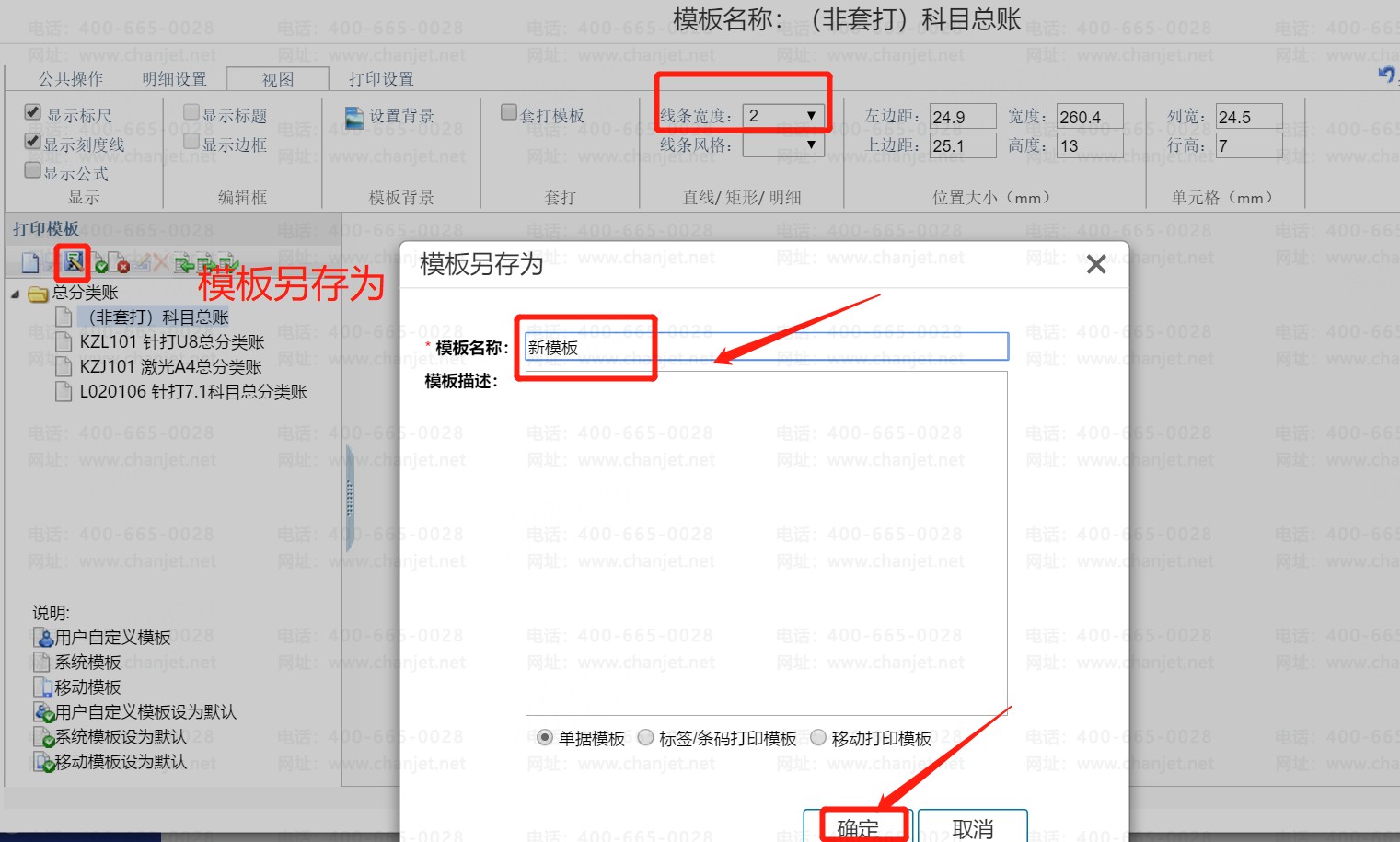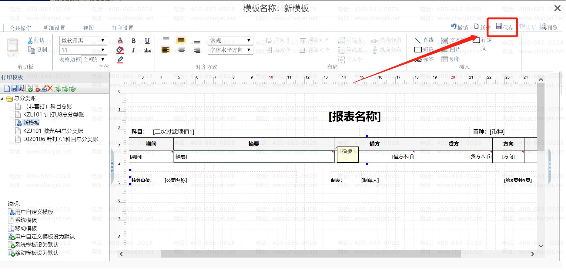 3、调整之后点击【另存为】另存为新模板再保存修改后的数据。(在系统模板上修改无法保存,需要另存为新模板之后才能正常保存)