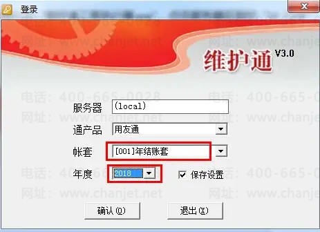 第二步:密码验证通过后,选择帐套号和年度并点击“确定”