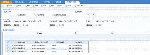 解析规则设置中,可以设置供应商,存货,供应商+存货匹配规则以及供应商存货匹配表,如果存在供应商存货匹配表情况下,优先取供应商存货对照表的匹配信息。