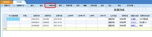 如果业务人员收到纸质发票,尚未采集入系统,可以在三单匹配界面的【发票采集】界面中,经发票查验接口获取进项增值税专用发票。