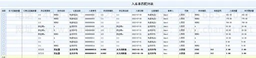 系统支持按入库单匹配和按订单匹配两种匹配方式,根据匹配方式在下栏的匹配列表中展示入库单或者订单记录