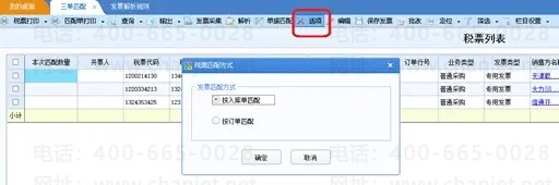 在获取进项增值税专票或者普票的时候,需要根据发票解析规则设置,将进项税票的销售方和销售货物名称等信息解析出来带到发票列表,使之与 U8供应商和存货名称对照。解析成功后可作为匹配依据在三单匹配界面与订单或入库单进行匹配。