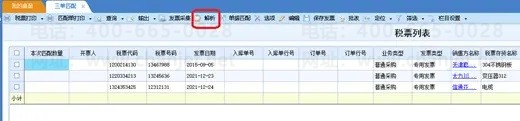 在对进项税票解析时,会将关键信息解析出来带到列表