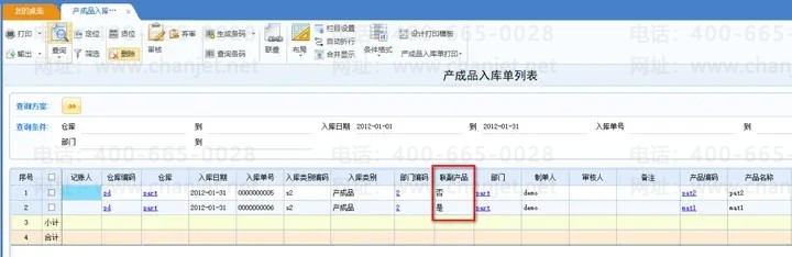 客户咨询,产成品入库单列表不显示入库产品是主产品还是联副产品,客户不能直观区分,还需要再到其他单据里分析查询,造成很大不便,希望产成品入库单列表能显示联副产品标识列。