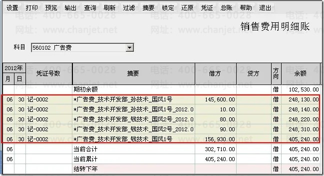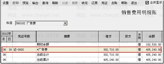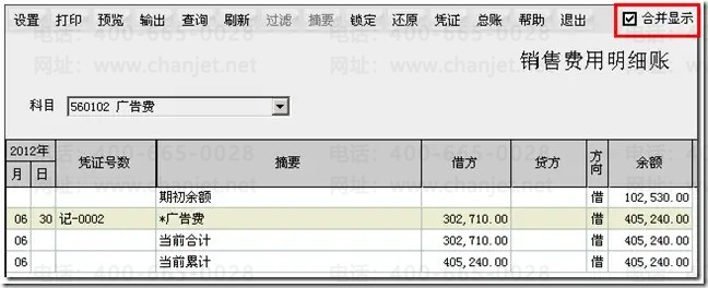 问题现象:查询明细账的时候,同一张凭证上同一个科目的不同分录分开成多行明细显示,能否合并为一行显示?