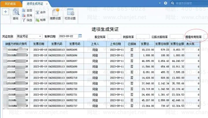 2、进项生成凭证界面,选择发票,填写一下增值专用税率,然后点击制单,系统会根据增值专用税率生成税金科目金额