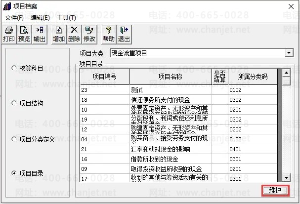 1、依次点击“基础设置”-“财务”-“项目目录”,再点击“项目目录”-“维护”;