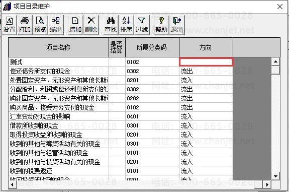 2、找到缺少流入流出方向的现金流量项目,添加上流入流出方向后退出即可;