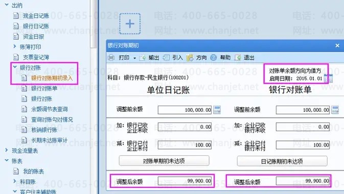 2、 维护期初:【出纳】-【银行对账】-【银行对账期初录入】中设置启用日期、方向和期初余额,如调整前余额有差异,则需根据实际流水维护期初未达明细。
